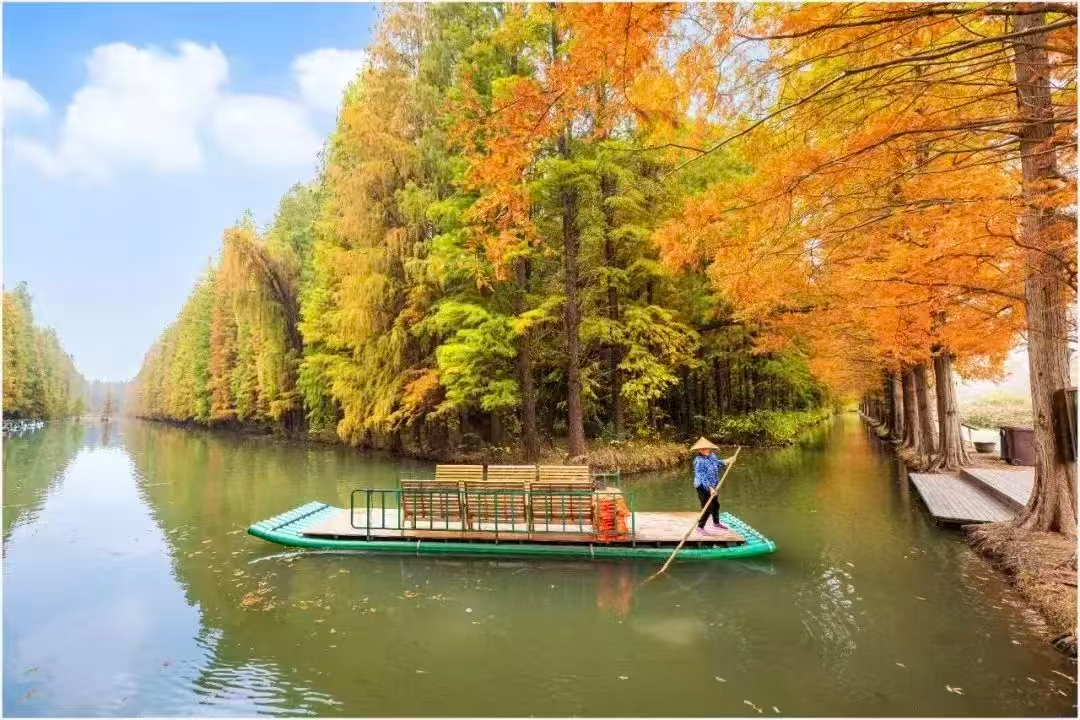 我来金湖的时候做过功课。水上森林公园占地12000多亩,其中3000多亩芦苇荡、5000多亩水杉林,那么,还剩下4000多亩——这应该就是巨大空间的面积了吧。太阳偏西,云蒸霞蔚,我站在12000多亩最高的地方,站在江苏省最大的人工湿地生态林之上,目光俯瞰、遥望面前的一切。一切都在有序铺展,如同四季,如同朝夕,如同盛衰,如同蛰伏与昂扬,如同婉约与豪放。这一切有天然,有人工,人工得体地融入天然,天然热忱地拥抱人工,相得益彰、彼此成就,挥洒出一幅壮阔雄浑的自然画卷。