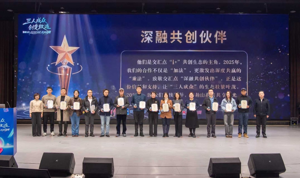思想的碰撞终要落地为行动的硕果。沙龙颁奖环节,交汇点大平台在全省4000多家共创伙伴中,推选出27家深融共创伙伴、62家聚力共创伙伴,见证了跨界合作从“相加”到“相融”的坚实步伐。