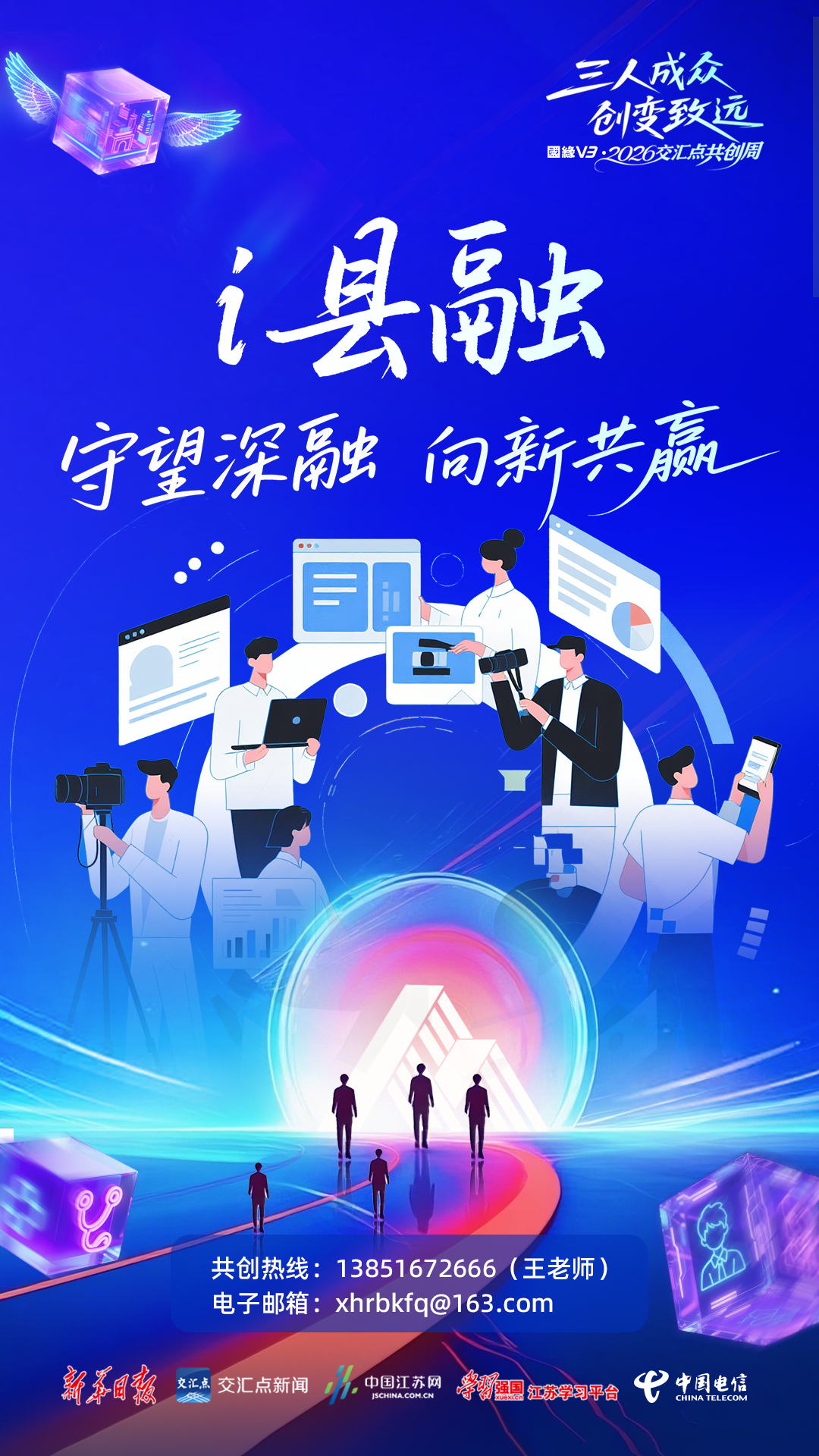 1月11日至18日举办的2026交汇点共创周,以“媒体融合+AI+场景创新”为主线,设置了中石化江苏石油非遗市集暨2026年“城门(地标)挂春联”开笔活动、“未来工程师”科技讲堂、新华报业AIGC创意实验室高校路演活动、“园区向‘新’,构造产业链IP图谱”主题采访交流会、“青春UP!大学生自媒体联盟孵化计划”走进高校、“三九暖民心 健康伴我行”名医团义诊活动、OPC社区行、AI智云派对解锁冬日“燃情密码”八大主题活动。1月18日激情上演的主题沙龙揭晓了更多“i+”内容,涵盖从教育赋能到科技突破,从文旅焕新到民生服务等多个方面,持续为江苏全域资源联动及潜能激活注入强劲动力。中国电信江苏分公司为本次活动提供了大力支持。