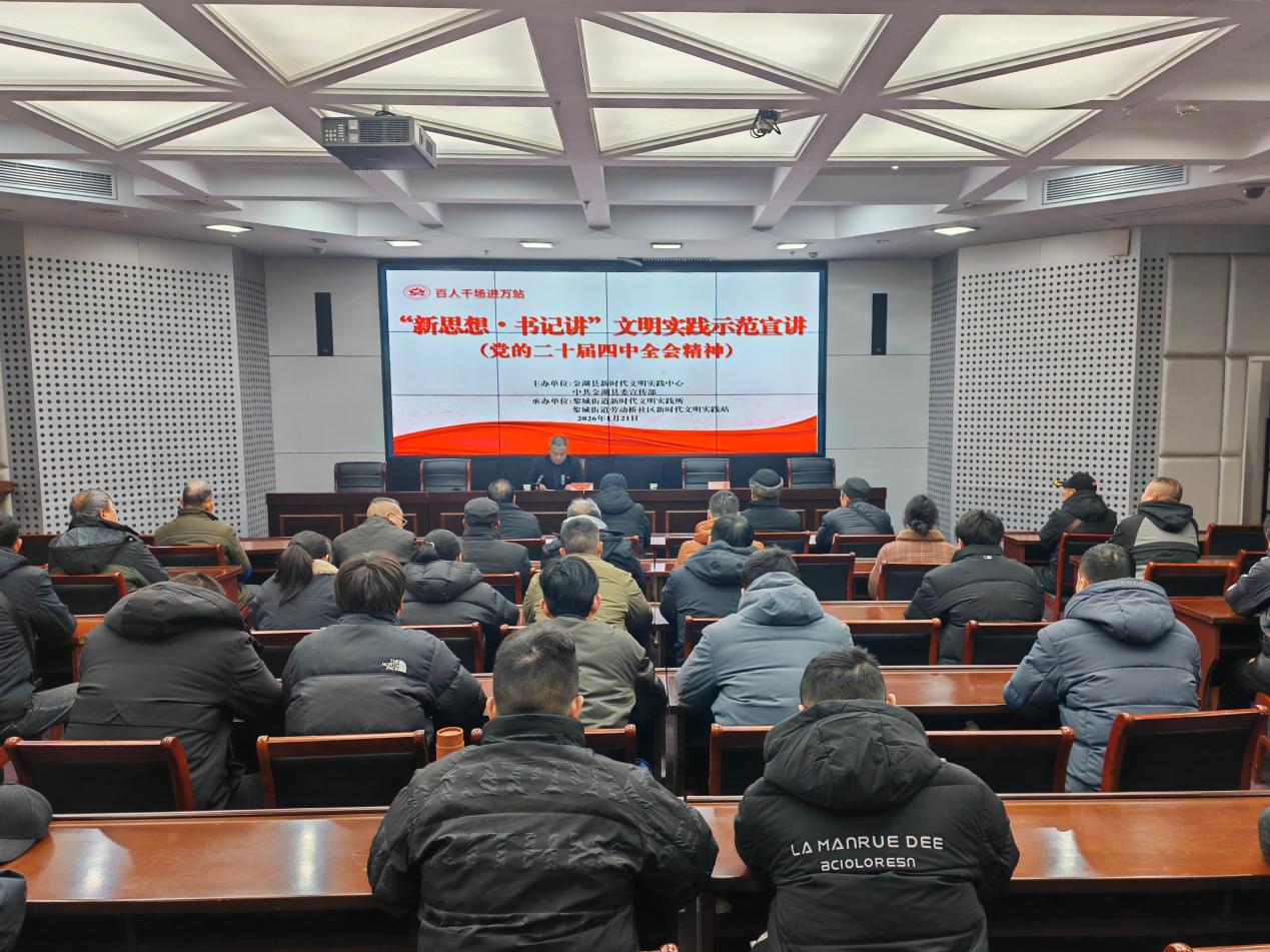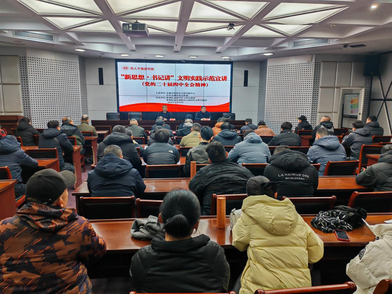 冬日暖阳映初心,理论宣讲润民心。1月21日,由金湖县新时代文明实践中心、中共金湖县委宣传部主办,黎城街道新时代文明实践所、黎城街道劳动桥社区新时代文明实践站承办的百人千场进万站“新思想·书记讲”文明实践示范宣讲活动如期举行。黎城街道劳动桥社区党委书记孙开文以“奋楫扬帆新征程 笃行实干谱新篇”为主题,向现场党员同志、居民朋友们深入解读党的二十届四中全会精神,擘画社区治理现代化新蓝图。
