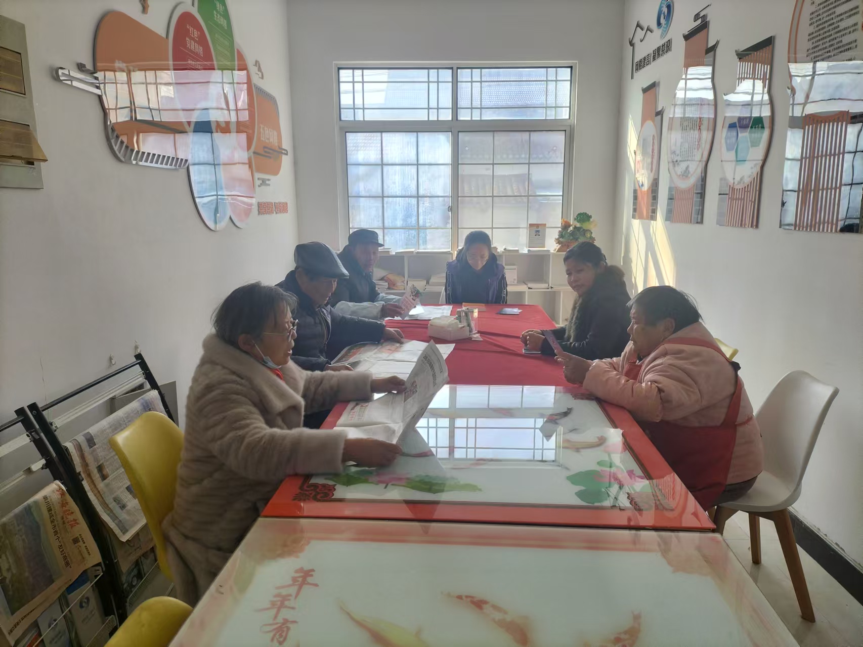 网格驿站作为乡村“暖心小窝”,成为阅读推广的重要阵地。河湾村在网格驿站内设立农家书屋交换站,鼓励村民携带家中闲置的文学经典、农技科普、家庭教育类书籍参与交换,实现图书资源共享。网格长还为村居孤寡老人开展报刊诵读服务,既丰富老人们的知识面,也让大家围坐交流、增进邻里情谊。