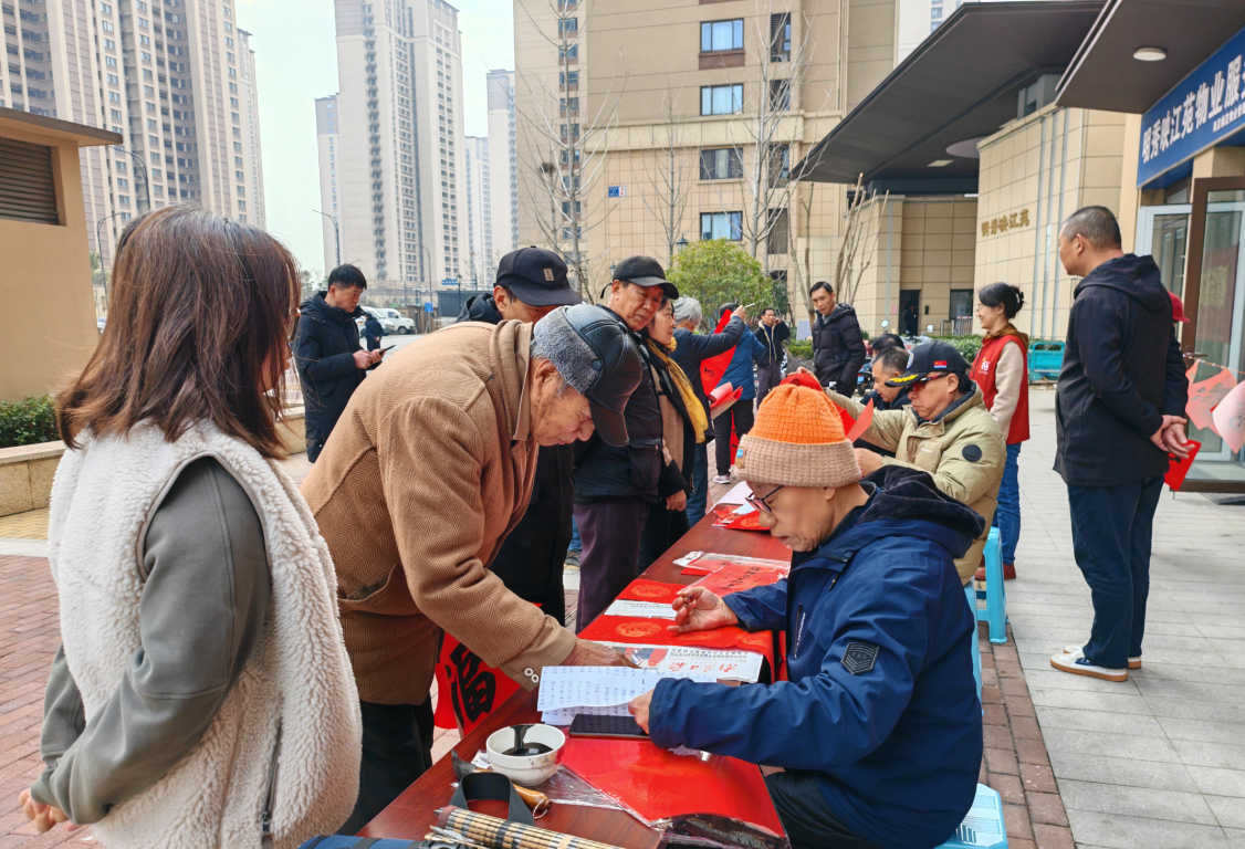 为传承中华优秀传统文化,营造喜庆祥和、文明温馨的节日氛围,增强社区凝聚力与居民幸福感,2月5日下午,栖霞区阅山社区联合栖霞街道文化站,在明秀映江苑南门外东侧小广场精心组织开展了“悦享笔墨迎新春,喜书联语送祝福”写春联福字主题活动。此次活动汇聚了社区网格员及妇联、残协、老体协等多方志愿者力量,邀请本地书法爱好者现场挥毫,为居民免费书写春联与“福”字,以笔墨寄情,以文化迎春。