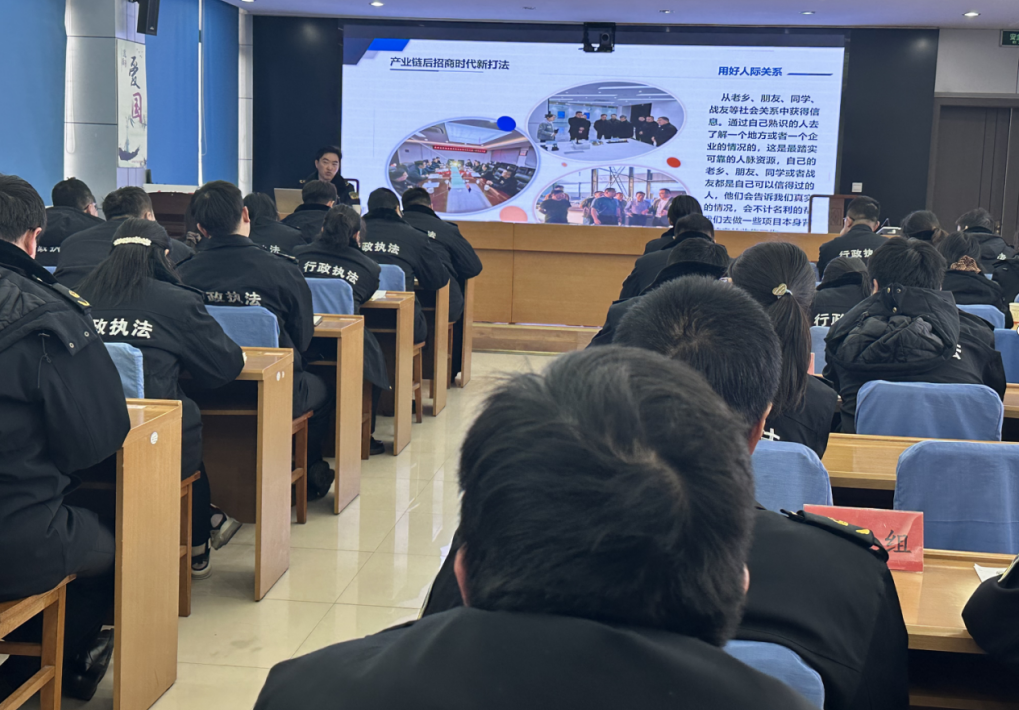 随后,县知识产权公共服务中心副主任周玉祥立足全局,深入浅出地分析了金湖县“双招双引”的重点方向、产业布局,并传授了“如何挖掘有效招商信息、产业链后招商时代的新打法”等招商实战方法论,为青年干部围绕中心、服务大局提供了清晰的行动指南。