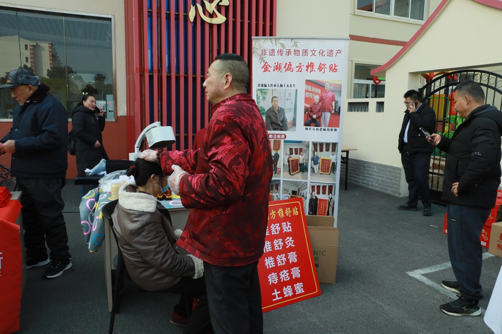 除了写春联、送福字,本次新春市集还整合了新阶层代表人士的专业优势,设置了便民服务、文化体验、惠民消费等多个特色区域。新阶层中的法律工作者现场提供免费法律咨询,为居民解答婚姻家庭、邻里纠纷、权益保障等常见法律问题;医疗从业者开展健康义诊,为居民测量血压、讲解冬季养生、慢性病防治等知识,提供针对性健康建议;手工艺从业者带来了自制的民俗手工艺品,现场展示漆扇等技艺。舒贴体验角邀请非遗传承人现场讲解技艺,为老年朋友、上班族提供免费颈腰按摩与贴敷体验。