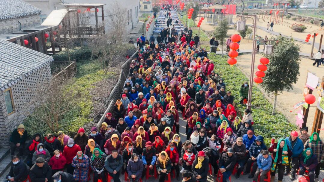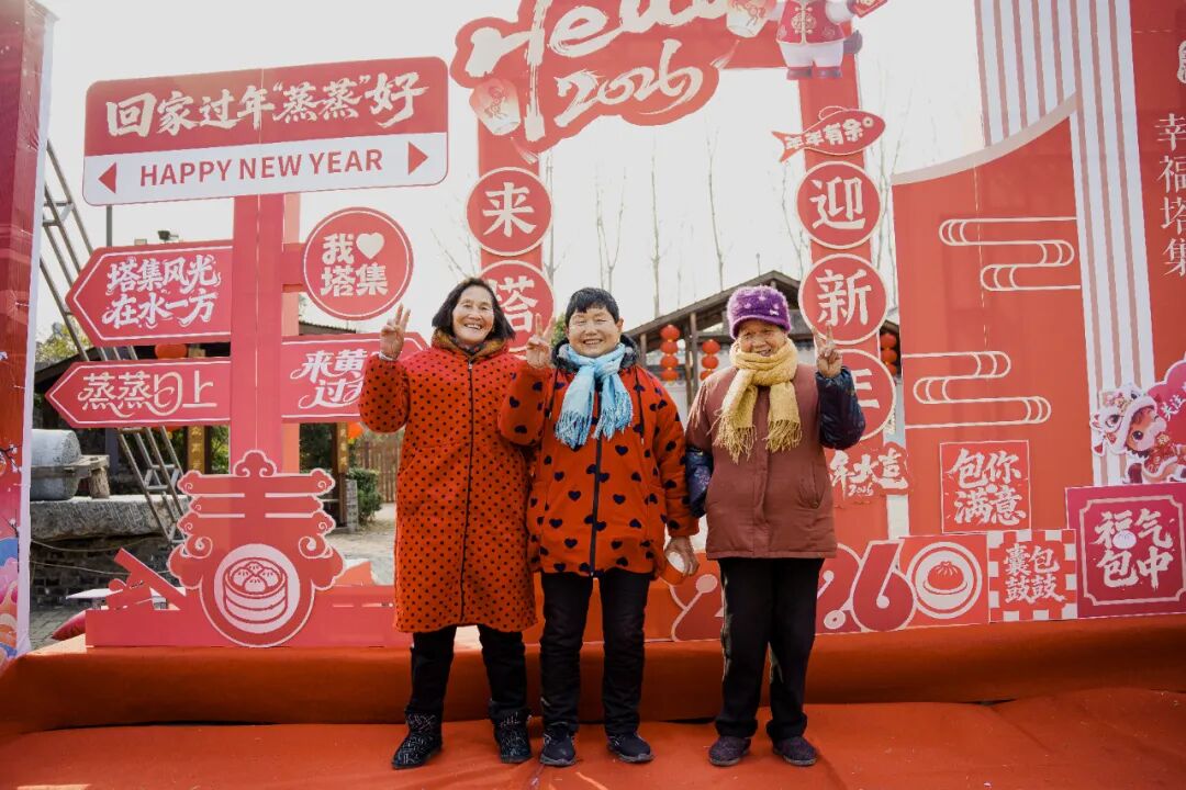 农历腊月二十,午后阳光温煦,金湖县塔集镇黄庄村热闹非凡,一场名为“包福气,看大戏,相约黄庄过马年”的迎新春活动,让这个水乡小村庄沸腾起来。一场热气腾腾的“福气包子”团圆宴,串起了非遗展演、翰墨送福、农产品集市,这里人流如潮,浓浓的乡村年味扑面而来。