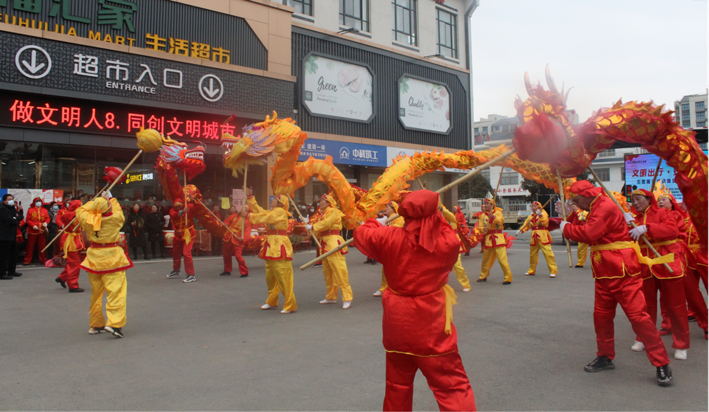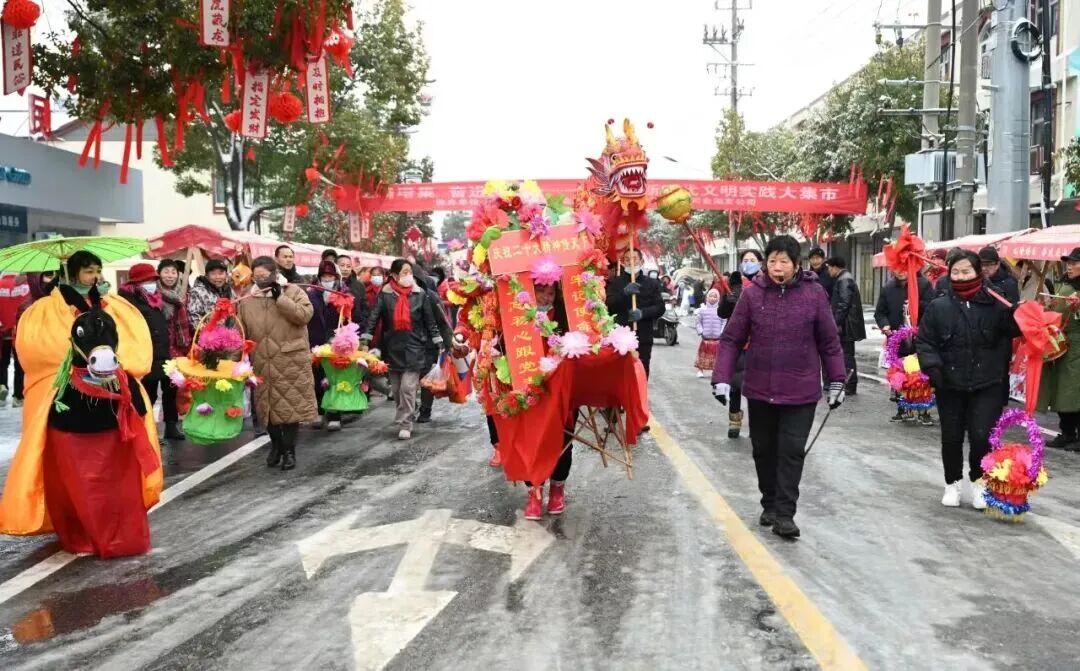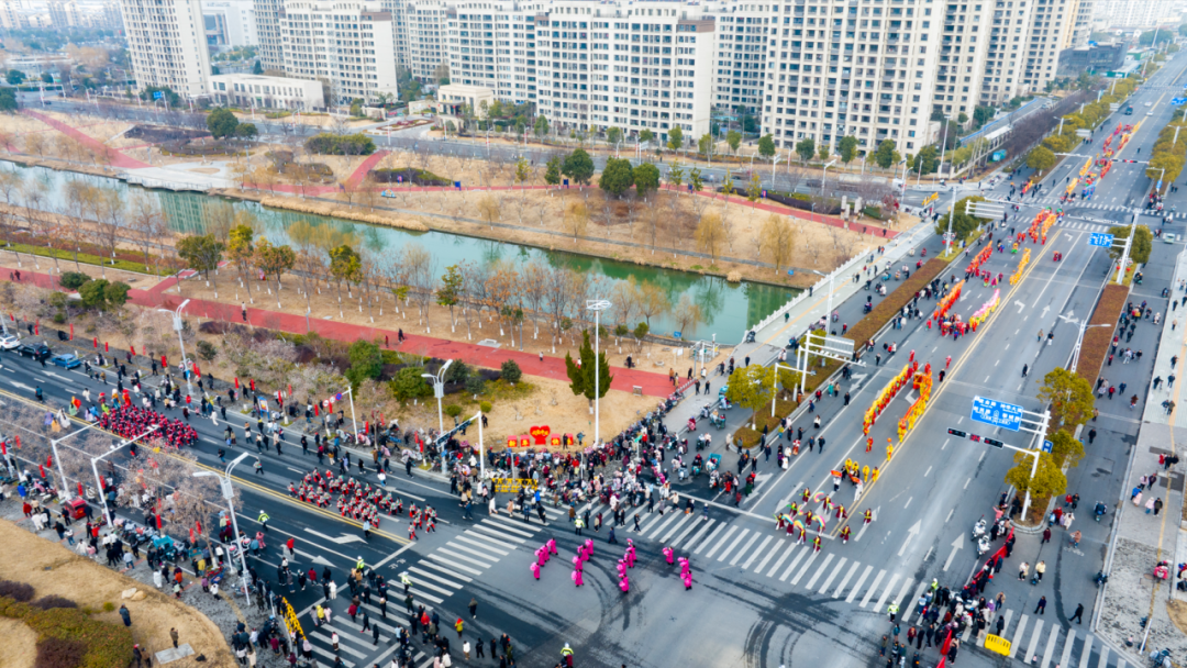 亮点抢先看:沿民泰银行至镇政府、沿河路至人民路、人民路至新建路至红湖村新时代文明实践站的路线,开展龙舞、花船舞等非遗踩街表演,营造喜庆的新春氛围。