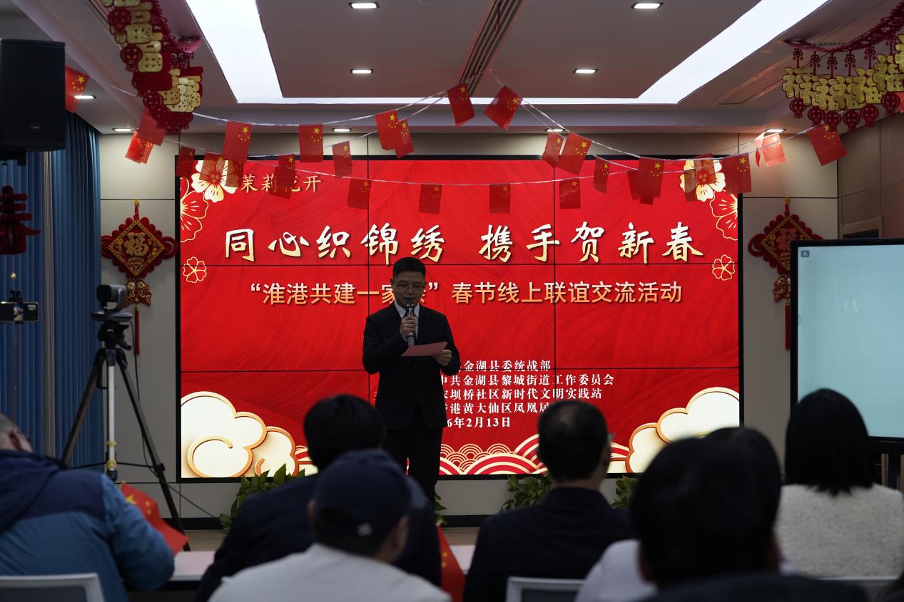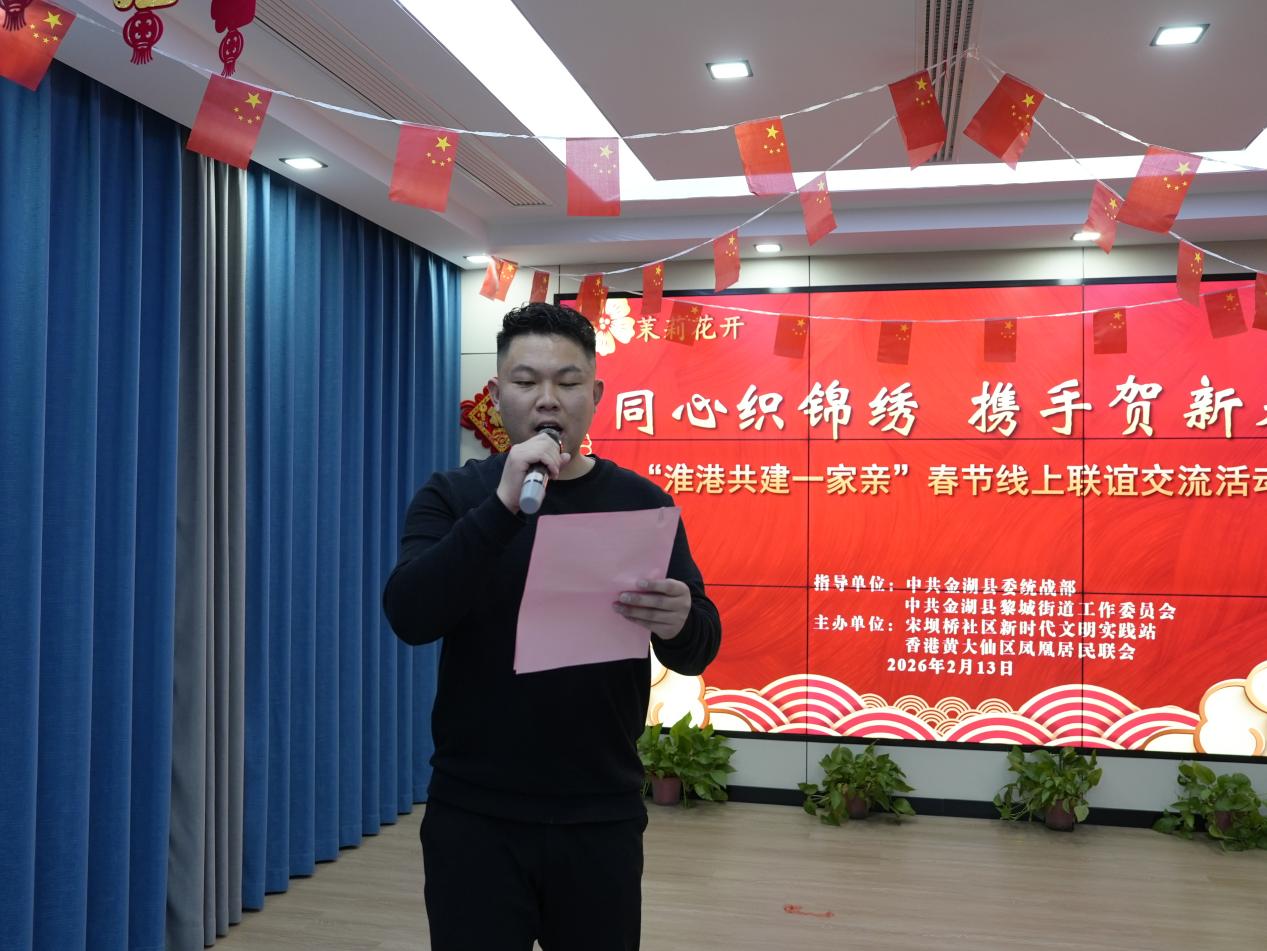 新春将至,年味渐浓。为深化淮港两地基层交流、共叙邻里情谊,金湖县黎城街道宋坝桥社区与香港黄大仙区凤凰居民联会于2月13日晚,以云端连线形式举办第二次线上联谊文化交流活动。本次活动以“同心织锦绣 携手贺新春”为主题,通过新春互贺、民俗分享、趣味互动、才艺展演、云端合影,让两地居民跨越山海、同贺新春,共迎丙午马年。
