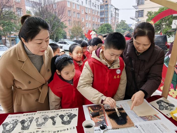 活动现场人头攒动,政策宣传、中医义诊、消防科普等摊位依次排开。社区工作人员耐心解答政策疑问,中医志愿者细致为居民量血压、普及健康知识,农业农村局、紫薇小学、汇龙专职消防队则结合自身职能,面对面回应居民关切。一旁的雷锋拓印体验区吸引众多居民和学生驻足参与,大家在动手制作中感悟榜样力量;“雷锋朋友圈”打卡点更是人气高涨,大家纷纷拍照留念,在互动中传递雷锋精神的时代温度。