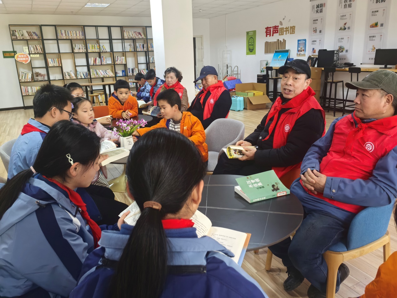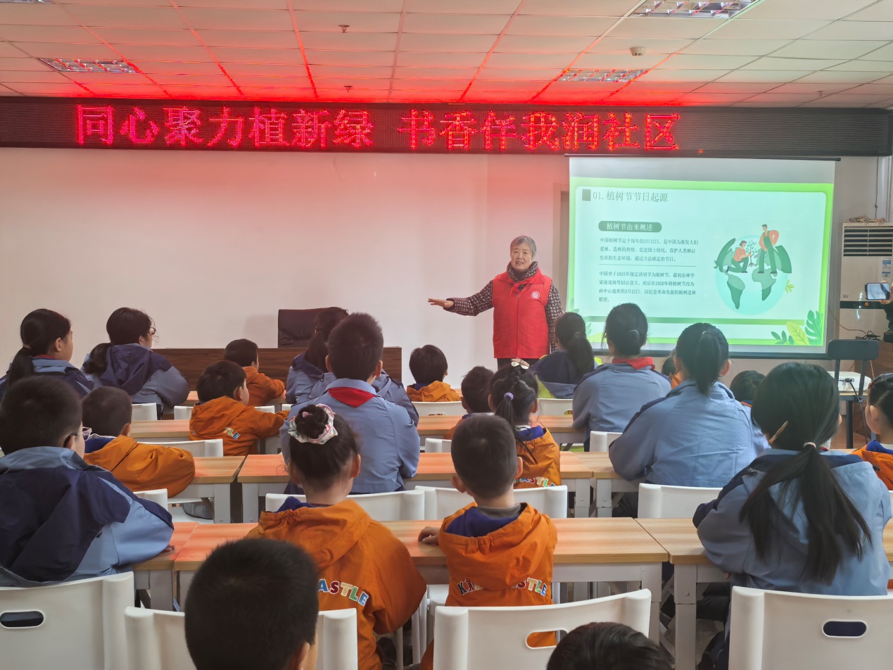 绿意满庭院,书香润童心。植树活动结束后,在社区书吧开展“春风伴读”绿色主题阅读活动。大家围坐在一起静心品读、交流心得,“五老”志愿者陈岳祥老师结合自身经历,分享绿色生活故事与护绿实践经验;青少年踊跃发言,畅谈阅读体会,抒发爱绿护绿的真挚情感。在书香与绿意的交融中,大家增长知识、陶冶情操,让文明新风与生态理念深深浸润社区每一寸土地、滋养每一位居民的心灵。