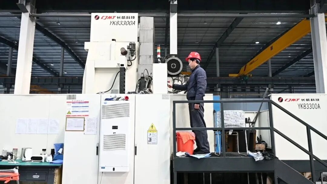 生产车间赶单忙,项目建设亦不停歇。在江苏景臻装备科技有限公司,车间内机器轰鸣,生产线高效运转,一件件经过精密加工的齿轮成品整齐排列,即将应用于大兆瓦级海上风电机组。