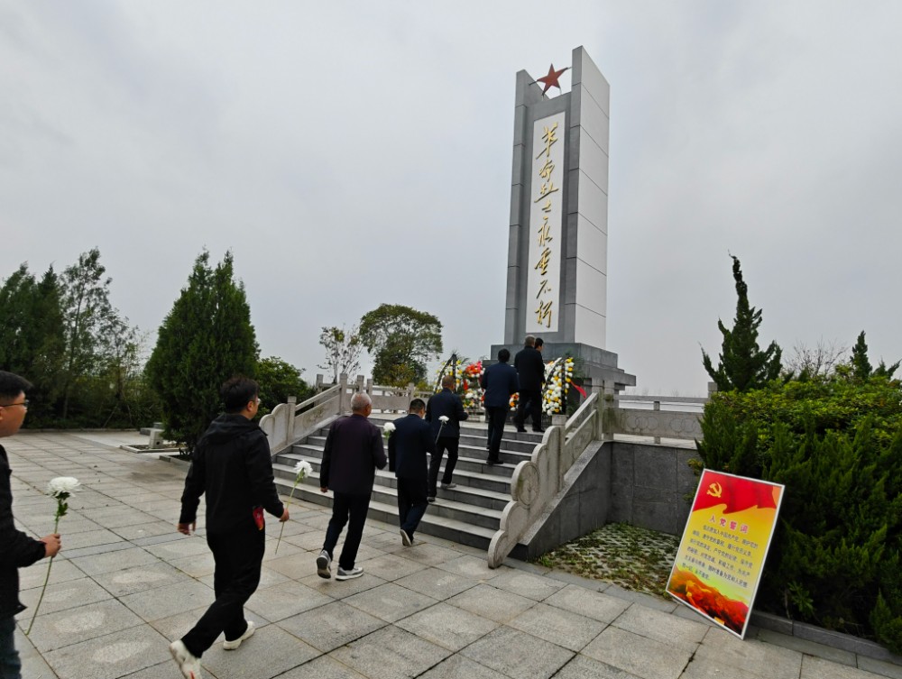 缅怀先烈铸忠诚,铮铮誓言守初心。当日下午,全体党员怀着崇敬之情来到塔集革命烈士纪念碑前,举行庄重的祭奠仪式。金南税务分局局长徐云峰领誓,全体党员高举右拳重温入党誓词,铿锵誓言回荡陵园,既是对革命先烈的深情告慰,更是对初心使命的坚定践行。随后,党员代表敬献花篮,全体人员手持白菊绕碑肃立、依次献花,深切缅怀革命先辈的英勇事迹与崇高精神。