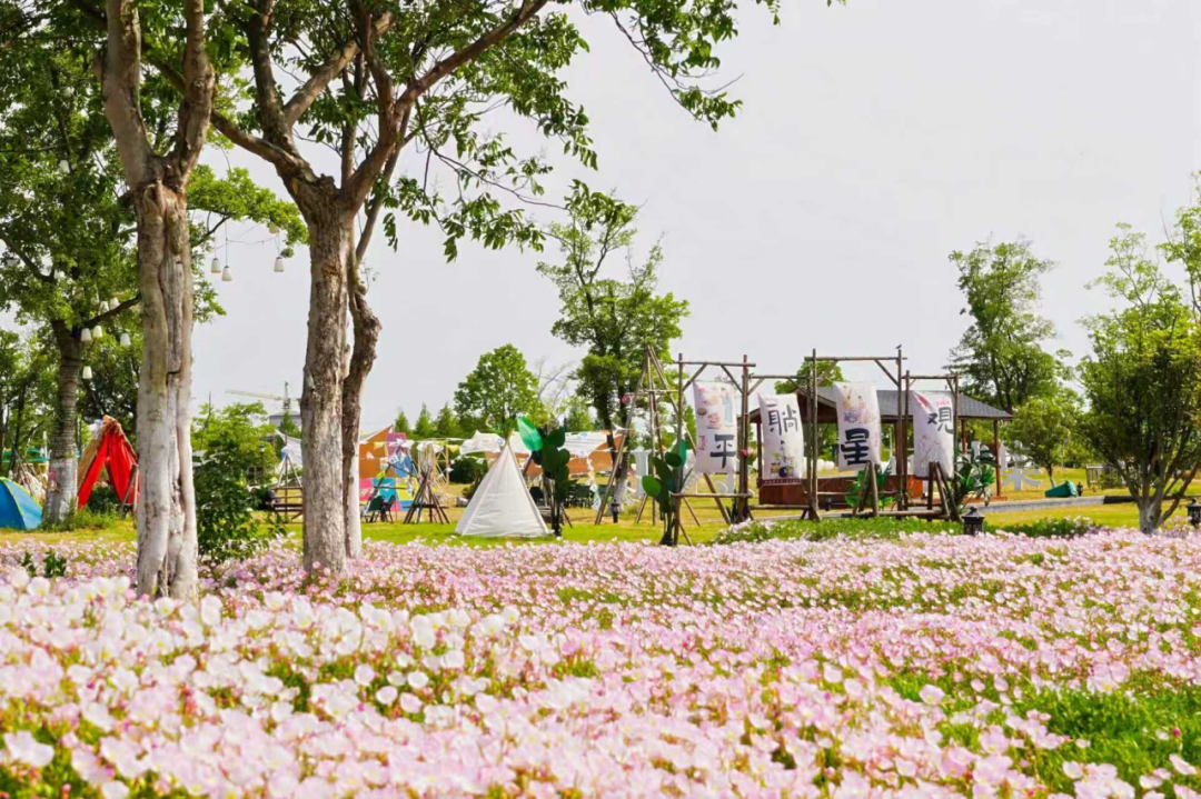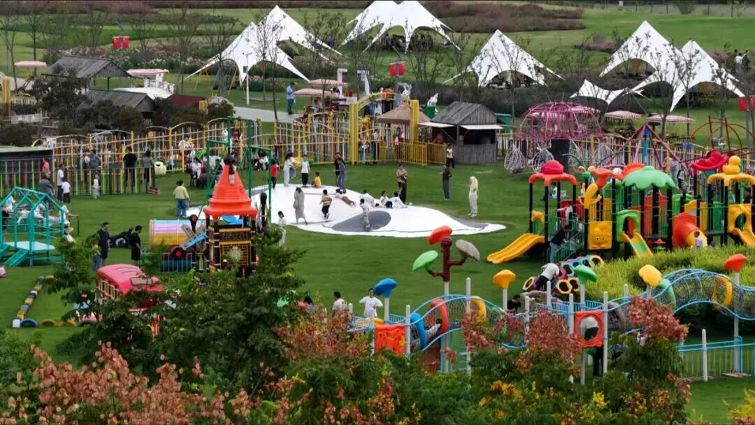从湖边回到岸上,三园农庄的田园时光静静等候。这里可以露营、垂钓、采摘,孩子们在无动力乐园尽情撒欢,大人们在天幕下放松休憩。水从田边流过,果林在风中摇曳——田园与水乡在这里完美交融。