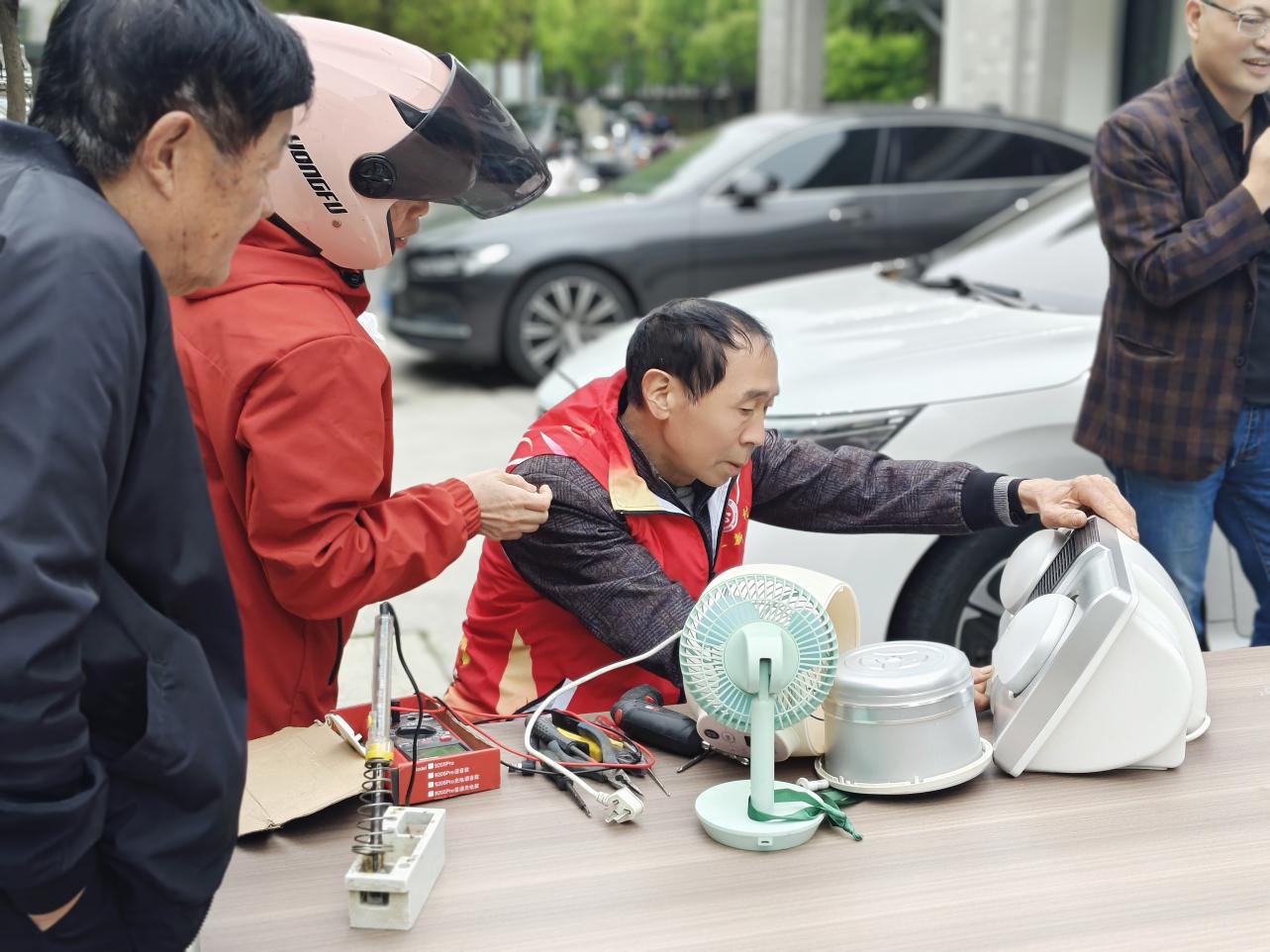 在“时光睦邻铺”实体阵地前,小家电维修、毛衣去球、擦鞋、皮带打孔等便民服务摊位一字排开,吸引了大批居民前来参与。“中国好人”吴勇师傅耐心为居民修理电饭煲、电水壶等小家电,精湛的手艺赢得连连称赞。社区党员主动拿起扫帚、抹布,带头清理公共区域卫生,擦拭宣传栏上的灰尘、捡拾绿化带中的纸屑和塑料袋。王阿姨笑着说:“这样的活动既实用又暖心,大家都愿意出来走走、互相帮帮忙。”活动现场欢声笑语不断,邻里之间的距离在互帮互助中悄然拉近。