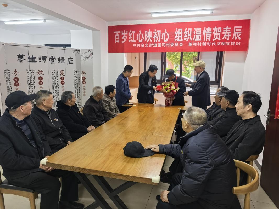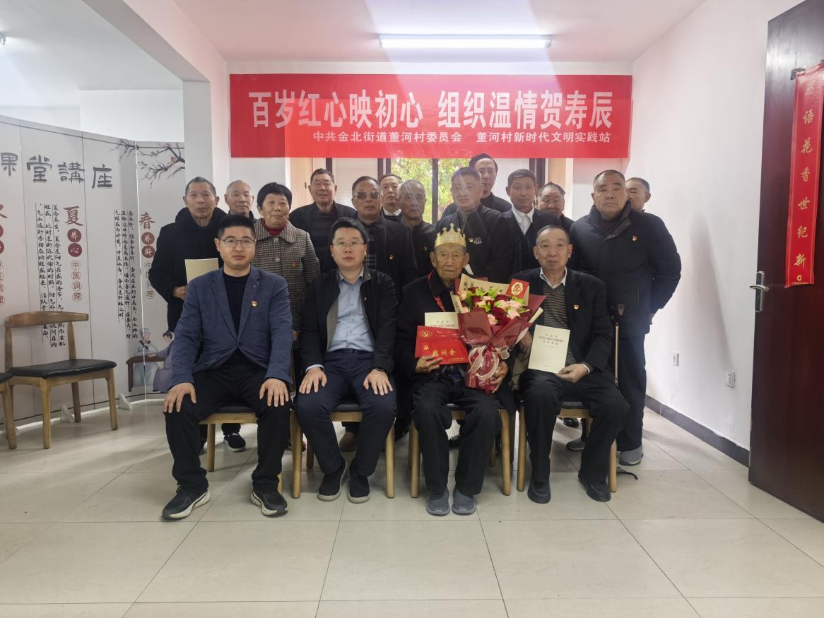 一位老党员,百载岁月,一生忠诚。4月17日,金湖县金北街道董河村老党员万书庭迎来百岁寿辰。为致敬这位用一生践行入党誓词的老党员,董河村党委联合村新时代文明实践站,精心组织“百岁红心映初心 组织温情贺寿辰”主题活动,将党组织的温暖与敬意送到老人身边,也在基层党员干部中掀起一场生动的党性教育课。
