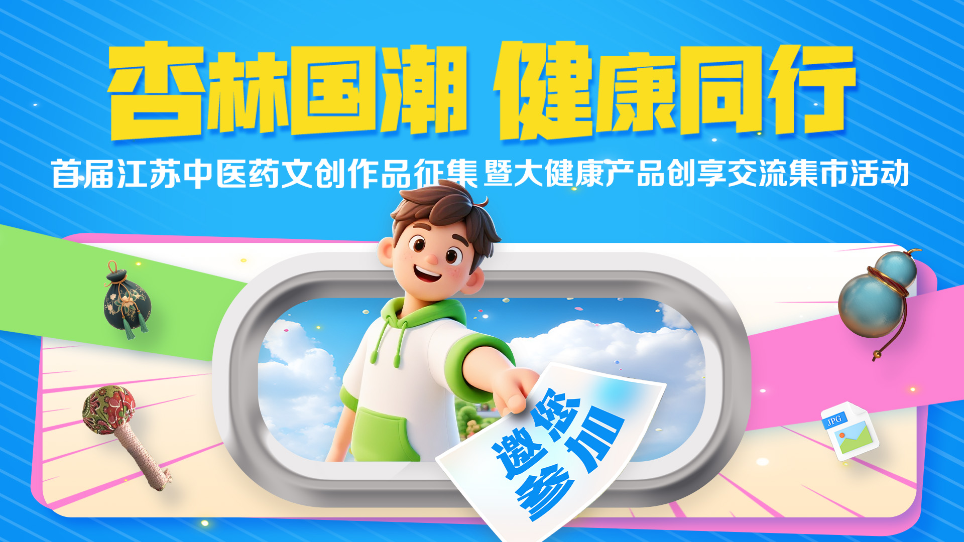 由南京中医药大学、南京报业传媒集团指导,南京中医药大学科技园、宣传部、团委、医院发展管理处、南报新健康研究院共同主办的“杏林国潮·健康同行”首届江苏中医药文创作品征集,正式向全社会发出创意邀约!