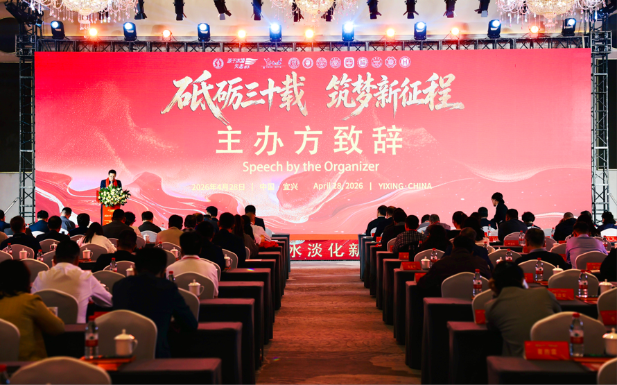 4月27日至29日,一场以“善心立业 水行大道”为主题的2026绿色水务与海水淡化新技术国际研讨会暨凌志装备集团30周年庆典在江苏省宜兴市举办。这场盛会由中华环保联合会主办,凌志装备集团承办,它不仅仅是一场见证30周年发展的民营企业国际研讨“盛会”,更是一次高端学术研讨、国家级科技成果鉴定、国际合作签约、文化研学交流的综合展示。