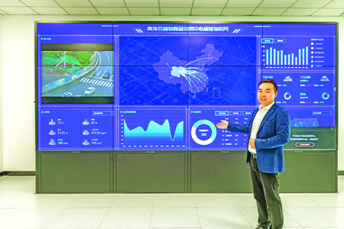 高原秋日,走进位于青海省海东市的中国电信(国家)数字青海绿色大数据中心,大屏上实时显示着大数据中心的整体用电情况,水电、光伏、风电的千瓦时和占比一目了然,这里承载着青海乃至全国越来越多的算力业务。